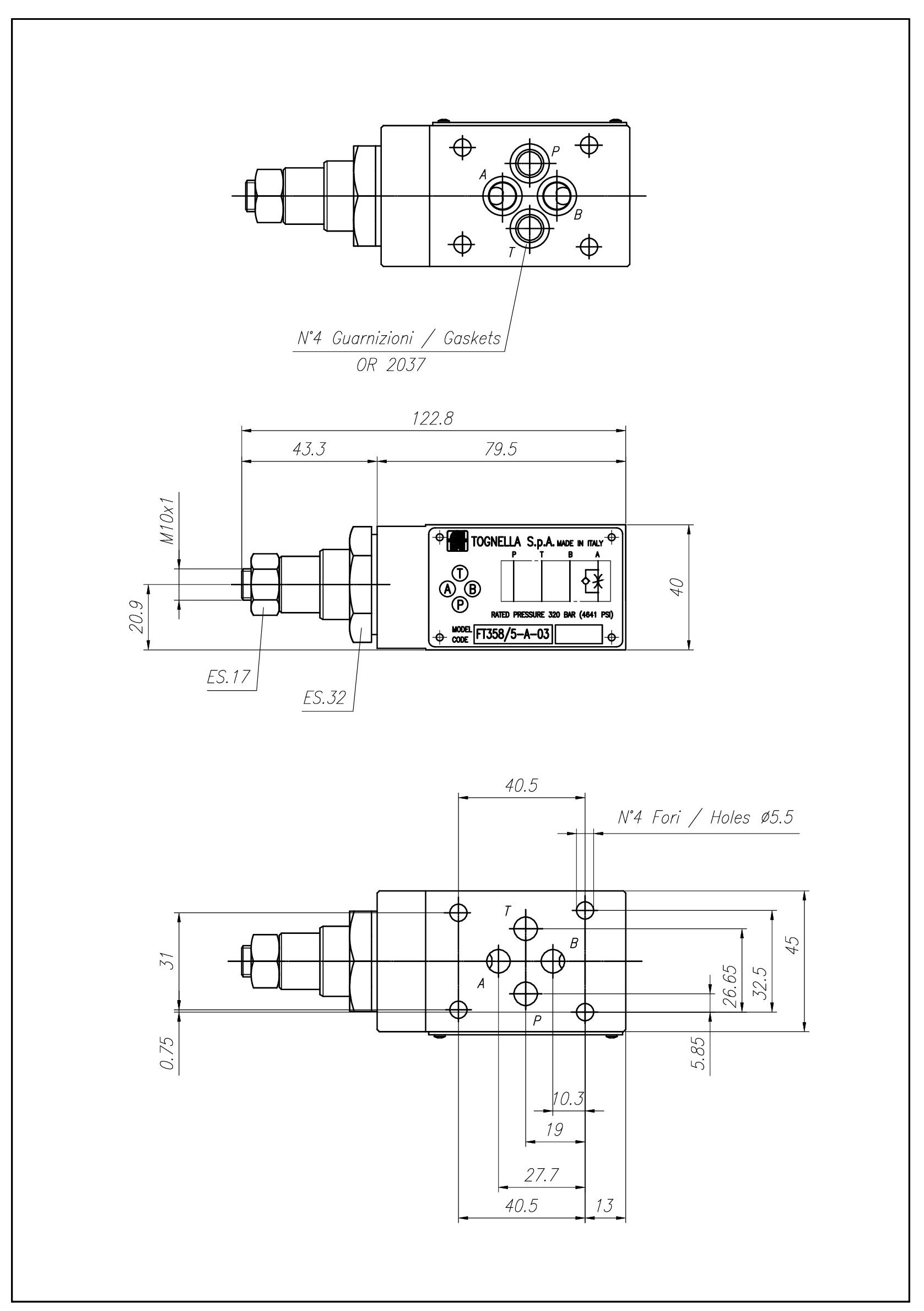 Regolatori di flusso unidirezionali Cetop3 disponibili con controllo sulla porta A-B o doppia A+B Pressione Massima 320 Bar, Portate di olio regolate da 0,5 a 35 L/min.